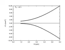 When the total position-spread tensor is partitioned according to spin (spin-partitioned total position-spread), it becomes a powerful tool to describe spin delocalization in the insulating regime. In Figure 4 is shown the longitudinal spin-partitioned total position-spread (Λ∥) computed at full configuration interaction level for the H2 diatomic molecule. The horizontal line at 0 bohr2 divides the same spin (positive values) and different spin (negative values) contributions of the spin partitioned total position-spread. Unlike the spin-summed total position-spread that saturates to the atomic value for R>5, the spin-partitioned total position-spread diverges as R2 indicating that there is a strong spin delocalization. The spin-partitioned total position-spread can also be seen as a measure of how strong the electron correlation is.