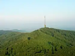 The Totenkopf is a hill in Baden-Württemberg, Germany, forming the highest point in the Kaiserstuhl region. The hill is topped by an observation tower and a 120-m (394-ft) Deutsche Telekom communications tower. Wine and fruit are cultivated on its slopes.