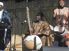 Toumani Diabaté (/ˌtuˈmɑːˌni ˌdʒɑːˈbɑːˌteɪ/ too-MAH-nee jah-BAH-tay;[2] born 10 August 1965) is a Malian kora player.[3] In addition to performing the traditional music of Mali, he has also been involved in cross-cultural collaborations with flamenco, blues, jazz, and other international styles.[3] In 2006, the London-based newspaper The Independent named Diabaté one of the fifty best African artists.[4]