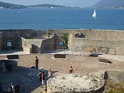 The fort was commissioned in 1513 by King Louis XII at the request of the bishop of Toulon and of the Senechal of Provence.[1] It was placed on the cap de la Manegue, at the end of the pointe de la Mitre, where it could fire at any ships coming into the Rade. The design was by the Italian engineer Gian-Antonio della Porta.[2] It was a classical example of a Torrioni, a round tower with cannon, constructed around Renaissance Italy in the 16th century. The tower was sixty meters in diameter and seven meters thick. Construction began in 1514 and was finished in 1524, during the reign of Francis I of France, at a cost of 30,000 florins. Because of its impressive size, the residents of Toulon called "La Grosse Tour."[1]