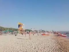 Stretching in the southwest, the Albanian Riviera is well known for its pure blue and turquoise beaches and has been a favorite destination for local and foreign visitors.[19] Aside from its beaches, it is also a destination for relaxation, tranquility, and nightlife with several music festivals such as Kala Festival and a number of renown nightclubs. Many villages and towns in the area are nationally known such as Dhërmi, Lukovë, Palasë, Qeparo and Borsh.