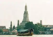 Of the hundreds of Buddhist temples (or wats) in Bangkok, only a few are of much interest to tourists. When King Taksin led his troops out of Ayutthaya and into Thonburi in 1767 CE, they took refuge in Wat Arun. The most prominent feature is a tall chedi built in the 1820s that stands 85 meters (279 ft). It was tallest structure in Bangkok until modern skyscrapers were built a few decades ago.