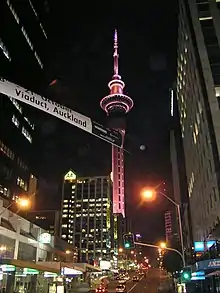 The vast majority of international tourist arrivals to New Zealand come through Auckland Airport, which handled 11.5 million international passengers in 2019.[5] Two percent of visitors arrived by sea as of 2009.[6] Many international tourists spend time in Auckland, Christchurch, Queenstown, Rotorua, and Wellington.[7] Other high-profile destinations include the Bay of Islands, the Waitomo Caves, Aoraki / Mount Cook, and Milford Sound. Many tourists travel considerable distances through the country during their stays, typically using coach lines or hired cars. Though some destinations have seasonal specialities (for winter sports, for example), New Zealand's southern-hemisphere location offers attractions for off-peak northern-hemisphere tourists chasing or avoiding certain seasons. In June 2018 the New Zealand government announced the imposition of a "tourist tax" of around NZ$25 to NZ$35 for international visitors, excluding Australians, many Pacific islanders, and young children. It planned to implement this taxation in 2019 through a newly proposed electronic travel-registration process.[8][9]