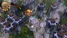 By the end of the boom, most tower defense games were still using side scrolling, isometric, or top-down perspective graphics. Iron Grip: Warlord, released in November, 2008 unsuccessfully pioneered the first person perspective shooter with the genre.[25] The awkward combination of experimental tower defense mechanics with 3D graphics was not well received, but later titles refined its execution paving the way for a popular new breed of games. Dungeon Defenders, released in October 2010, was one of the first tower defense games to bring the genre to the third person perspective. It sold over 250,000 copies in first two weeks of release[26] and over 600,000 copies by the end of 2011.[27] 2010 saw the release of SteamWorld Tower Defense, Protect Me Knight, The Tales of Bearsworth Manor, Revenge of the Titans, Arrow of Laputa, Toy Soldiers and Robocalypse: Beaver Defense.