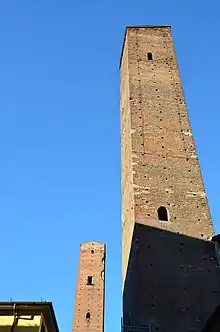 Most of the towers were built in the corners of the blocks into which Pavia was divided, often flanked by a vault, which guaranteed the structure the effect of counterthrust. Within the first urban walls (Pavia at the end of the twelfth century had three circles of walls, the first of which dates back to the Roman age) most of the main urban factions had palaces and houses close to each other, to symbolize the political and social solidarity of the nucleus, these buildings were flanked by a tower, while the same families enjoyed the patronage of at least one, or even more, of the churches in the neighborhood. An emblematic case is the tower, still existing today, albeit reduced in height, of the tower of the Pavese family of Catassi,[2] located at the corner between piazza della Posta and via Galliano, near which stood, in addition to the houses of the family group, also the churches of Saint John of the Catassi and San George of the Catassi. Often the same families had similar artifacts built, of smaller size, on their farms and possessions in the countryside, such as the Torti, who at Porta Pertusi (based on the estimates of 1254) controlled a district, where in fact there were the churches of Santa Onorata dei Torti and Santa Maria dei Torti, while in the countryside they held the fortified farm of Torre de 'Torti, mentioned for the first time in 1259 and still existing today.[3]