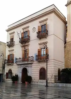 The choice for this place was due to its favourable position. The construction, after the project of the architect Gaspare Di Giovanni, started in 1843; later, the engineer Francesco Palermo, assisted by the engineers Greco and Severino, took over him.[2] The building was completed in 1865 and the following year they settled the municipal offices there; the palace was completely restored in 1984.