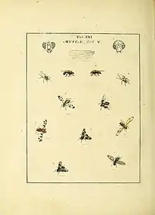 - Moses Harris (1782), An exposition of English insects : including the several classes of Neuroptera, Hymenoptera, & Diptera, or bees, flies, & Libellulae : exhibiting on 51 copper plates near 500 figures, accurately drawn & highly finished in colours, from nature, Illustrator: Moses Harris, London, p. 75, doi:10.5962/BHL.TITLE.168994, Wikidata Q107401818