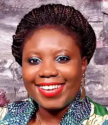 She has delivered Papers and presentations as well as led focused group discussions at the Nigerian Economic Summit Group, Women in Management, Business and Public Sector, Youth Africamp organized annually by Open Society Institute of East Africa, Women of West African Entrepreneurship, Africa Wide Consultation on Post 2015 Development Agenda and Expert Group Meeting, and the United Nations Media Workshop on Africa Governance Report.[28][29][30][31]