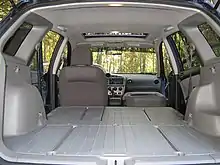 One of the Matrix's unique design features is its interior, particularly the rear 60/40 seats and cargo area. Made with rigid plastic backs, the rear seats fold flat, creating a 53.2 cu ft (1.51 m3) cargo area. In a practicality test, Motor Trend was able to haul more cargo in the Matrix than in a Subaru WRX wagon with 61.1 cu ft (1.73 m3) of space.[8] In addition to the eight tie-downs in the back for attaching the included cargo nets and tonneau cover, the seats and rear floor have integrated rails for installing extra tie-downs.[8][25]