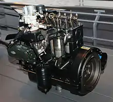 Bore and stroke was 77 mm × 78 mm (3.03 in × 3.07 in).[1] In common with new engines of the time, it was made from cast iron (both the block and the head), water cooled, used a three bearing crank, 12V electrics and a side-mounted gear-driven camshaft controlling overhead valves via pushrods in a non-cross flow head (exhaust and inlet manifolds being on the same side of the engine).[1] Induction was by a twin throat down-draft carburettor, the compression ratio was 8.0:1 and the total weight was 155 kg (342 lb).[1] An LPG version, the R-LPG, was produced for the last two years.