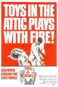 Toys in the Attic is a 1963 American drama film directed by George Roy Hill and starring Dean Martin, Geraldine Page, Yvette Mimieux, Gene Tierney and Wendy Hiller. The film is based on a Tony Award-winning play of the same name by Lillian Hellman. The screenplay adaptation is by James Poe, and the original music score was composed by George Duning.