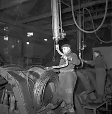 As of 1939 TLH employed 4.673 workers in Le Havre.[16] During World War II (1939–45) in the period between 1940 and 1944 TLH had to deal with a shortage of copper, and made more use of aluminum and aluminum alloys.[17] From 1943 Henri Lafond was President of the Mines du Huaron and on the board of Tréfileries et Laminoirs du Havre.[13] A 1952 study said Trefileries et Laminoirs du Havre had a capital of 3,132 million francs and holdings in Hauts Fourneaux de la Chiers, Alais-Froges, Financiere Metallurgique Electrique, Lignes Telegraphiques et Telephoniques, Etablissements Bouchery, Signaux et Entreprises Electriques, Etablissements Coquillard and the Societe Procol.[18] TLH was also part-owner of Pechiney.[19]