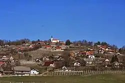The local church, built on top of Mount Trška Gora in the northern part of the settlement, is dedicated to the Nativity of Mary and belongs to the Parish of Šentpeter–Otočec. It was built in 1621 on the site of an earlier church.[3] Two of the paintings in the church are the work of Josip Egartner.[4]