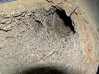 As in humans, the distribution of trabeculae in bird species is uneven and is dependent on load conditions. The bird with the highest density of trabeculae is the kiwi, a flightless bird.[16] There is also uneven distribution of trabeculae within similar species such as the great spotted woodpecker or grey-headed woodpecker. After examining a microCT scan of the woodpecker's forehead, temporomandibulum, and occiput it was determined that there is significantly more trabeculae in the forehead and occiput.[17] Besides the difference in distribution, the aspect ratio of the individual struts was higher in woodpeckers than in other birds of similar size such as the Eurasian Hoopoe[17] or the lark.[18] The woodpeckers’ trabeculae are more plate-like while the hawk and lark have rod-like structures networked through their bones. The decrease in strain on the woodpecker's brain has been attributed to the higher quantity of thicker plate-like struts packed more closely together than the hawk or hoopoe or the lark.[18] Conversely, the thinner rod-like structures would lead to greater deformation. A destructive mechanical test with 12 samples show the woodpecker's trabeculae design has an average ultimate strength of 6.38MPa, compared to the lark's 0.55MPa.[17]