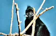The lutungs, langurs, or leaf monkeys are a group of Old World monkeys in the genus Trachypithecus (derived from Greek τραχύς, trachýs meaning "rough" and πίθηκος, píthekos meaning "monkey"). Their range is much of Southeast Asia (northeast India, Vietnam, southern China, Borneo, Thailand, Java, and Bali).
