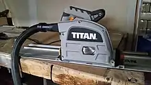A plunge saw or plunge-cut saw is a type of hand-held circular saw which differs from a regular circular saw in that it can plunge into the material to a predetermined depth during the cut. In other words, the depth-of-cut is not fixed and often can be adjusted to be just slightly over the thickness of the board being cut. This property also allows a plunge saw to cut shallow grooves into the workpiece, if necessary. Compared to traditional hand-held circular saws, plunge saws are said to increase operator safety, as well as allowing for reduced splintering and tear-out.[1] Plunge saws are an essential power tool for joiners, carpenters, kitchen fitters and anyone who works with laminates, insulation or needs to make lots of cuts in small work pieces.