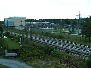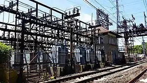 A traction substation, traction current converter plant, rectifier station or traction power substation (TPSS) is an electrical substation that converts electric power from the form provided by the electrical power industry for public utility service to an appropriate voltage, current type and frequency to supply railways, trams (streetcars) or trolleybuses with traction current.