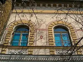 Trade academy was built in 1892 by the projects of Hungarian architect István Kiss. Kiss used Florentian sort of Neo-Renaissance, combined with masterful sgraffito technique on the upper floor. Main facade looks at the Begej river (turned into lake in 1985) and Court house across it. This was Kiss's first building in Zrenjanin (then Nagybecskerek) after which he projected Finance palace, nearby Trade academy.