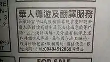 In Hong Kong and Macau, traditional Chinese has been the legal written form since colonial times. In recent years, however, simplified Chinese characters are also used to accommodate Mainland Chinese tourists and immigrants.[10] The use of simplified characters has led to residents being concerned about protecting their local heritage.[11][12]