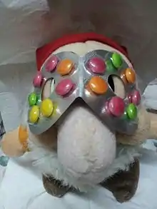 "Glasses candy" (眼鏡糖) and "diamond ring candy" (戒指糖) are interesting to many of the Hong Kong people because of their appearance. Glasses candy has its package imitating a real pair of glasses, and allows the children to wear it by using a rubber band to link two ends together. The diamond ring candy (similar to the western Ring Pop) imitates a precious gem by putting the candy on a plastic ring. Usually people will wear it on their hands while eating.
