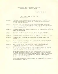 One of the oldest traditions at Washington & Jefferson College were the "Freshman Rules," a system of rules and restrictions on freshmen. By tradition, the rules were to "make the frosh feel at home."[10] Of all the rules, the sock inspection inspired the most fear, as upperclassmen were able to inspect the color and type of socks worn by any freshman at any time.[10] Punishments for failing to wear Freshman Rules-compliant socks ranged from paddling to being drenched in the gym showers. The sock inspections often turned into a gang fight, with freshman defending their compatriot against upperclassmen.[10]