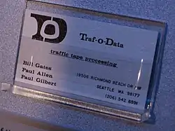 Traf-O-Data was a business partnership between Bill Gates, Paul Allen and Paul Gilbert that existed in the 1970s. The objective was to read the raw data from roadway traffic counters and create reports for traffic engineers. The company had only modest success but the experience was instrumental in the creation of Microsoft Corporation a few years later.[1]