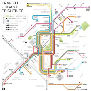 Trafiku Urban was established on 1 April 1976 by the Municipality of Pristina as a public company.[3] It was developed in the year of rapid development of the city, when new neighborhoods emerged, and an influx of new residents arrived in the city. The buses from 1976 were present until 1999, when some of the lines were privatized. In 2016 the Municipality of Pristina signed a deal with EBRD to buy new buses for the first time since 1976. As part of the deal, a new Sustainable Urban Mobility Plan was commissioned. As of 2018, 51 new buses operate in 15 lines of the urban transport system, with the plan to reorganize into 20 lines by 2019.[4]