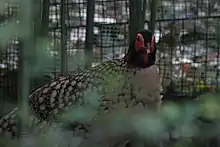 Cabot's tragopan (Tragopan caboti) is a pheasant found in south-east China. The common and scientific names of this large bird both commemorate the ornithologist Samuel Cabot III.[3] Other common names include the Chinese tragopan and the yellow-bellied tragopan. The population is divided into two subspecies, of which the dominate subspecies is found in the provinces of Fujian, Jiangxi, Zhejiang, and Guangdong, and T. c. guangxiensis is confined to northeastern Guangxi and southern Hunan. The IUCN has assessed it as being a "vulnerable species".