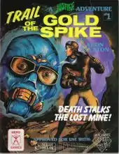 Trail of the Gold Spike is an adventure in which the player characters oppose the evil Condor as he tries to run a family out of their mining business.[1] Though written for Justice, Inc. , it was also "approved for use with" and included statistics for Chill, Call of Cthulhu and Daredevils.