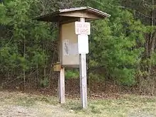 A trailhead is the point at which a trail begins,[1] where the trail is often intended for hiking, biking, horseback riding, or off-road vehicles. Modern trailheads often contain rest rooms, maps, sign posts and distribution centers for informational brochures about the trail and its features, and parking areas for vehicles and trailers. The United States Access Board states "A trailhead is defined as an outdoor space that is designated by an entity responsible for administering or maintaining a trail to serve as an access point to the trail."[2] The intersection of two trails is a trail junction and does not constitute a trailhead.[2]