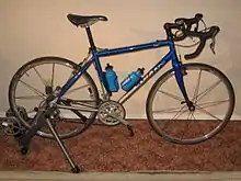 A bicycle trainer is a piece of equipment that makes it possible to ride a bicycle while it remains stationary.[1] They are commonly used to warm up before races, or when riding conditions outside are not favorable.