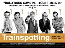 MacDonald worked with Miramax Films to sell the film as a British Pulp Fiction,[23] flooding the market with postcards, posters, books, soundtrack albums and a revamped music video for "Lust for Life" by Iggy Pop directed by Boyle.[13]