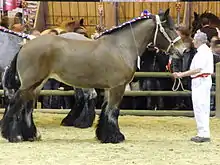 The Trait du Nord, previously also known as Ardennais du Nord or Ardennais de type Nord, is a breed of heavy draft horse developed and bred in the area of Hainaut in western Belgium and in northeastern France. Originally considered a subtype of the Ardennes, it was recognized as an individual breed with the opening of a studbook in 1903. Developed in the fertile Flemish grasslands, it was bred for size and pulling power for agricultural work. By 1855, the horses bred near Hainaut were considered by some veterinarians to be superior to other Flemish draft breeds. The Trait du Nord was used extensively in mining from the late 19th century through 1920, with lesser use continuing through the 1960s.
