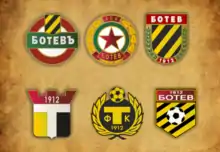 A following board meeting, held in September 1917, replaced the club's crest, which was an encircled Cyrillic letter "Б", an abbreviation for "Ботевъ", the club's full name. The new approved crest (used today) was a red circle, with a green rectangle situated centrally above, with the name of the club inscribed inside. Above the rectangle was a yellow and black striped shield, while the club's year of establishment was displayed underneath it.[24]