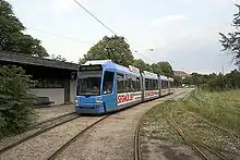 In December 2011 an extension was opened from the previous Effnerplatz terminus to St. Emmeram.[2] The extension was 4.3 kilometres (2.7 mi) long and added seven new tram stops to the network. Tram route 16 was extended to serve St. Emmeram, with knock-on effects on routes 17, 18 and 27.[5][7]