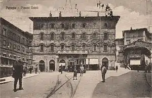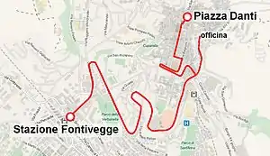 Before the line was shortened in 1932 the city centre terminus of the tramline was at the Piazza Danti, in front of the cathedral.[2] Until the tramline was installed the Piazza was known locally as the "Piazza del Papa" ("Pope Piazza"), which was a reference to the bronze statue of Pope Julius III by Vincenzo Danti that had to be repositioned to create space for the electric tram.
