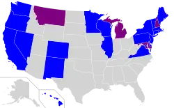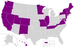 Many jurisdictions in the US currently offer third gender markers on driver's licenses,[99] including Arkansas,[100] California, Colorado, Connecticut,[101] Delaware, Washington D.C., Hawai'i, Massachusetts,[102][103] Maine, Maryland, Michigan,[104][105] Minnesota, Nevada, New Hampshire,[106] New Jersey,[107] New York,[108] Ohio, Oregon, Pennsylvania,[109][110] Rhode Island,[111] Utah, Virginia,[112][113] Vermont, and Washington.