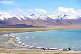 The name Transhimalaya was introduced by the Swedish geographer Sven Hedin in early 20th century.[3] The Transhimalaya was described by the Columbia Lippincott Gazetteer in 1952 as an "ill-defined mountain area" with "no marked crest line or central alignment and no division by rivers." On more-modern maps the Kailas Range (Gangdise or Kang-to-sé Shan) in the west is shown as distinct from the Nyenchen Tanglha range in the east.[4]