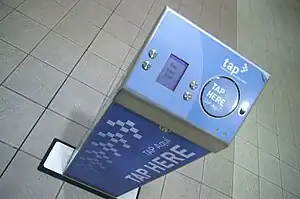 The Transit Access Pass (TAP) is a contactless smart card used for automated fare collection on most public transport services within Los Angeles County. It is administered by the Los Angeles County Metropolitan Transportation Authority (Metro), and the card and fare collection systems are manufactured by Cubic Transportation Systems. Metro staff manage the web site and provide customer support functions.[1]