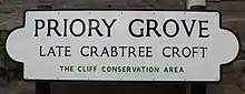 On 9 June 2004, the day after the first of a 21st-century pair of Venus transits occurred as predicted by Horrocks, a commemorative street nameplate in memory of William Crabtree was unveiled at the junction of Lower Broughton Road and Priory Grove, which marks the northern boundary of Crabtree Croft.[24] In December 2005, a commemorative plaque was unveiled a few yards away near Ivy Cottage on Lower Broughton Road, which is thought to have been the home of Crabtree and his family at the time he was collaborating with Horrocks.[24] The second transit of the pair occurred on 5 and 6 June 2012, and was marked by a celebration held in the church at Much Hoole, which was streamed live worldwide on the NASA website.[25] A celebration was also held at Crabtree's former home in Broughton when NASA broadcast a re-creation of the observation at Ivy Cottage, inspired by the Ford Madox Brown mural, to millions of viewers, and projected a live video stream of the transit from Hawaii onto the side of the house.[26]