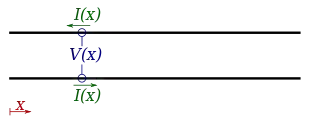 - The distributed inductance (due to the magnetic field around the wires, self-inductance, etc.) is represented by a series inductor (in henries per unit length).
