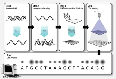 Transmission electron microscopy DNA sequencing is a single-molecule sequencing technology that uses transmission electron microscopy techniques. The method was conceived and developed in the 1960s and 70s,[1] but lost favor when the extent of damage to the sample was recognized.[2]