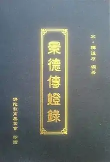 The Jingde Record of the Transmission of the Lamp (traditional Chinese: 景德傳燈錄; simplified Chinese: 景德传灯录; pinyin: Jǐngdé Chuándēnglù; Wade–Giles: Ching-te Ch'uan teng lu; Japanese: Keitoku Dentō-roku), often referred to as The Transmission of the Lamp, is a 30 volume work consisting of putative biographies of the Chan Buddhist and Zen Buddhist patriarchs and other prominent Buddhist monks. It was produced in the Song dynasty by Shi Daoyuan (simplified Chinese: 释道原; traditional Chinese: 釋道原; pinyin: Shì Dàoyuán; Wade–Giles: Shih Tao-Yüen). Other than the Anthology of the Patriarchal Hall, it represents the first appearance of "encounter dialogues" in the Chan tradition, which in turn are the antecedents of the famous kōan stories.