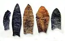 Archaeological artefacts known as clava hand-clubs found in Araucanía and nearby areas of Argentina have a strong resemblance to the mere okewa found in New Zealand.[47] The clava hand-clubs are also mentioned in the Spanish chronicles dating to the Conquest of Chile.[47] According to Grete Mostny, clava hand-clubs "appear to have arrived to the west coast of South America from the Pacific".[47] Polynesian clubs from Chatham Islands are reportedly the most similar to those of Chile.[48] The clava hand-club is one of various Polynesian-like Mapuche artifacts known.[48]