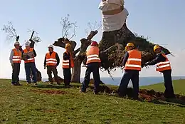 In agriculture and gardening, transplanting or replanting is the technique of moving a plant from one location to another. Most often this takes the form of starting a plant from seed in optimal conditions, such as in a greenhouse or protected nursery bed, then replanting it in another, usually outdoor, growing location. The agricultural machine that does this is called a transplanter. This is common in market gardening and truck farming, where setting out or planting out are synonymous with transplanting. In the horticulture of some ornamental plants, transplants are used infrequently and carefully because they carry with them a significant risk of killing the plant.[1]