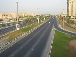 To the south of Manama, roads connected groves, lagoons and marshes of Hoora, Adliya, Gudaibiya and Juffair.[4] Villages such as Mahooz, Ghuraifa, Seqaya served as the end of these roads. To the west, a major highway was built that linked Manama to the isolated village port of Budaiya,[4] this highway crossed through the 'green belt' villages of Sanabis, Jidhafs and Duraz.[4] To the south, a road was built that connected Manama to Riffa. The discovery of oil accelerated the growth of the city's road network.[4]