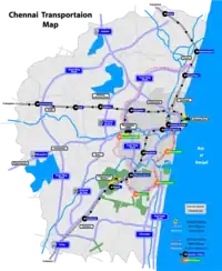 Transport in Chennai includes various modes of air, sea, road and rail transportation in the city and its suburbs.[1] Chennai's economic development has been closely tied to its port and transport infrastructure,[1] and it is considered one of the best infrastructure systems in India.