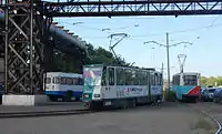 In Oskemen, a tram system was operated until 2018.[14] Opened between 1959 and 1978, the tram was a popular form of transport in Oskemen/Ust-Kamenogorsk. At its peak, it had six routes, but in the end it had four routes in operation. It had a fleet of 50 working tram cars.[15]