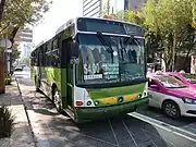 The peseros are typically half-length passenger buses (known as microbús) that sit 22 passengers and stand up to 28. As of 2007, the approximately 28,000 peseros carried up to 60 percent of the city's passengers.[8][9][10] In August 2016, Mayor Mancera announced that new pesero vehicle and concessions would be eliminated unless they were ecologically friendly vehicles,[11] and in October 2011 the city's Secretary of Mobility Héctor Serrano states that by the end of the current administration (2018) there would no longer by any peseros/microbuses circulating at all, and that new full-sized buses would take over the routes.[12]