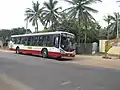 The most popular mode of public transport in the city is KSRTC city buses coming under MCTD Division. Buses are available to all locations in the city as well as villages and towns outside the city. KSRTC MCTD Division has a fleet of around 500 buses. These buses are majorly semi low floor Non-AC city buses. Other buses include AC Volvo buses and older high floor buses.[8] Mysore was the first city in India to implement Intelligent Transport System (ITS) with funding from World Bank.[9] There are 5 IMTC Bus stands in Mysore at Kuvempunagar, Sathgalli, R.S Naidunagar, Yelwala and Chamundi Hills. The main bus stand has 5 bays and 3 bays for suburban busses which ply to towns and villages of the district, Subways and free Wifi facilities.[10]